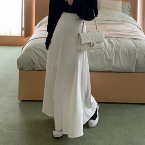 تنورة كورية عالية الخصر وكبيرة التأرجح للنساء 2024 مزاج ربيعي متعدد الاستخدامات للتنحيف لتغطية الورك تنورة طويلة أنيقة على شكل حرف a