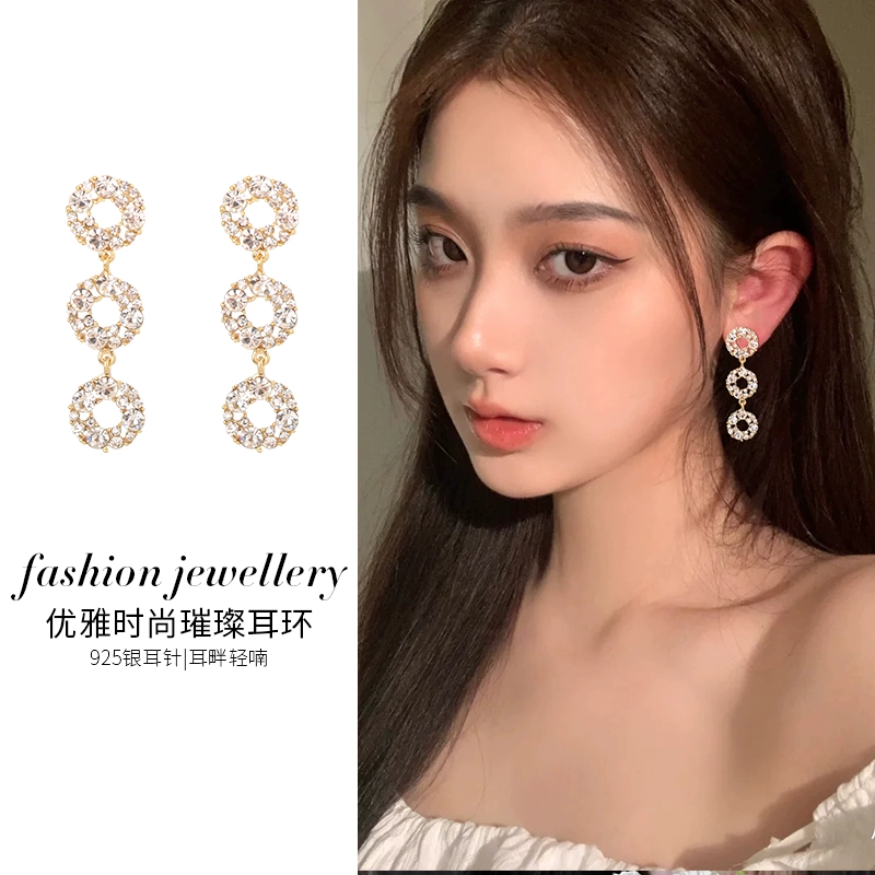 الأقراط الصيفية الشهيرة على الإنترنت الأوروبية والأمريكية أقراط دائرية أقراط نسائية طويلة مبالغ فيها أقراط حجر الراين الفاخرة الخفيفة الراقية