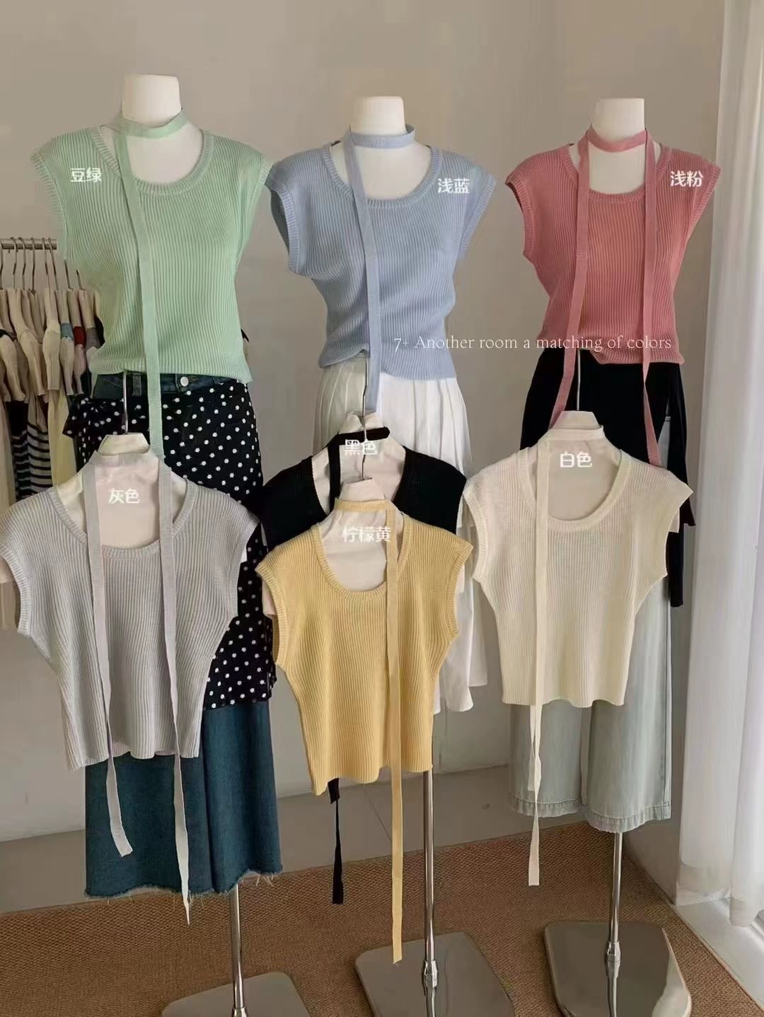 ملابس الطفل الكورية نمط سلوب القطن سترة بلا أكمام تي شيرت ملابس الصيف للبنين والبنات الأطفال بلايز الصيف Y8406