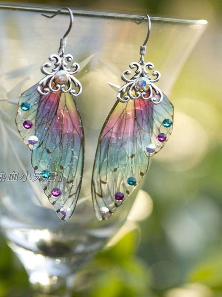 أقراط بوهيمية متدرجة، زوج من الأقراط المخصصة من ريش الفراشة
