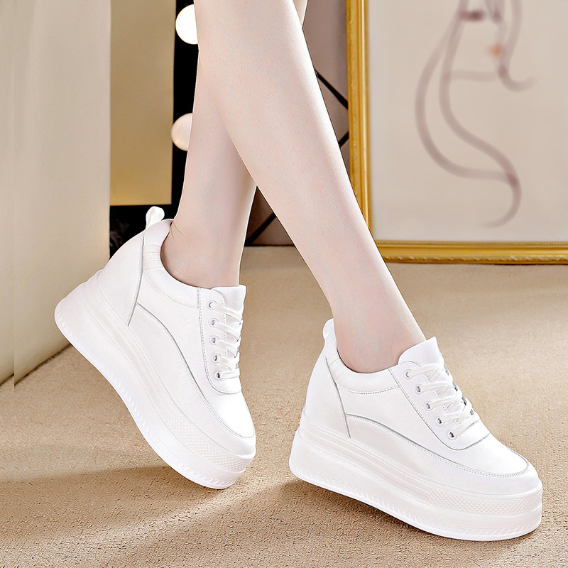 أحذية بيضاء من الجلد الطبيعي أحذية نسائية داخلية أحذية منصة 2024 أحذية سفر بيضاء غير رسمية للتنحيف مناسبة تمامًا