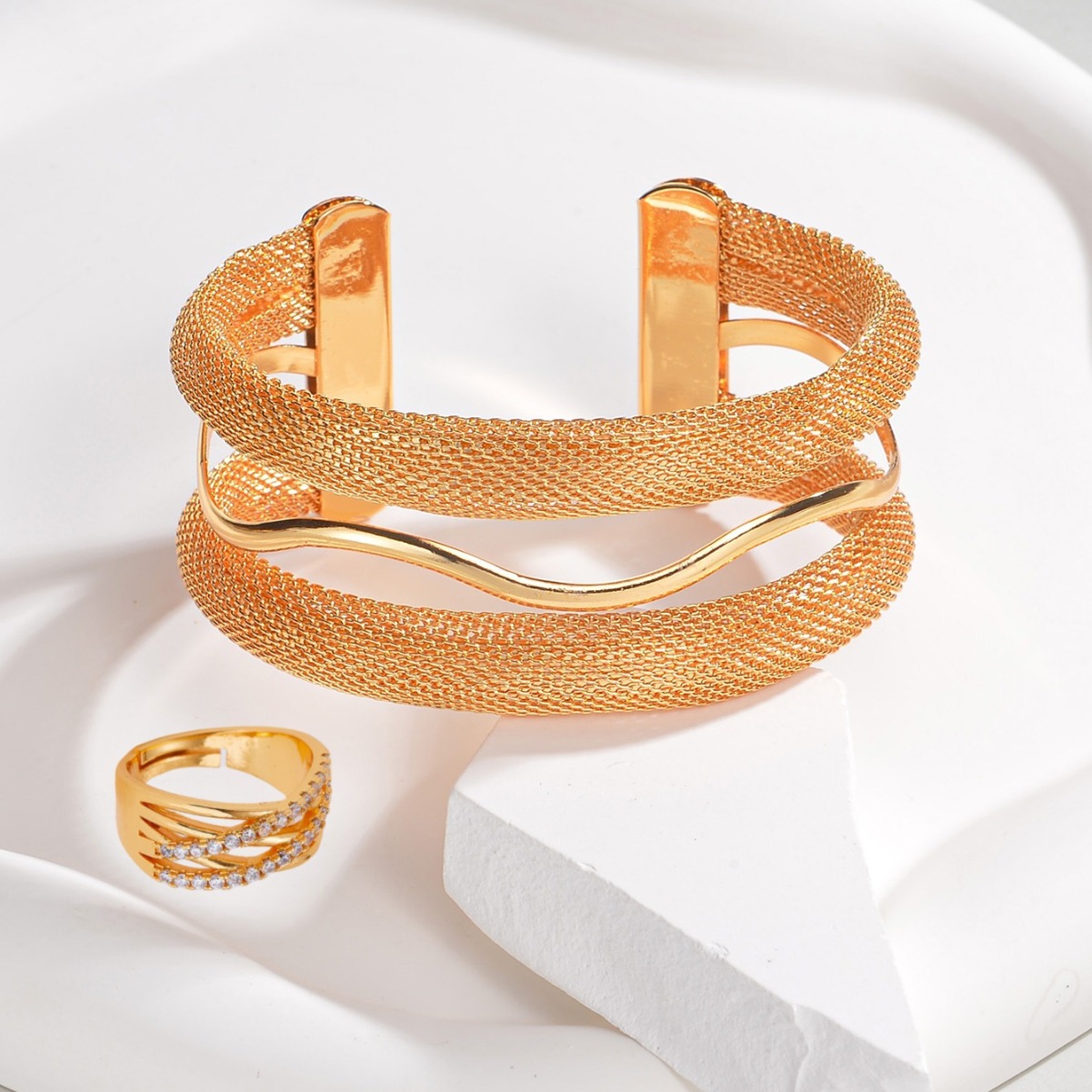 انفجارات عبر الحدود 2 بدلة مطعمة الزركون حلقة سميكة ثلاث حلقات غير النظامية سوار ذهب مجوهرات عالية الجودة