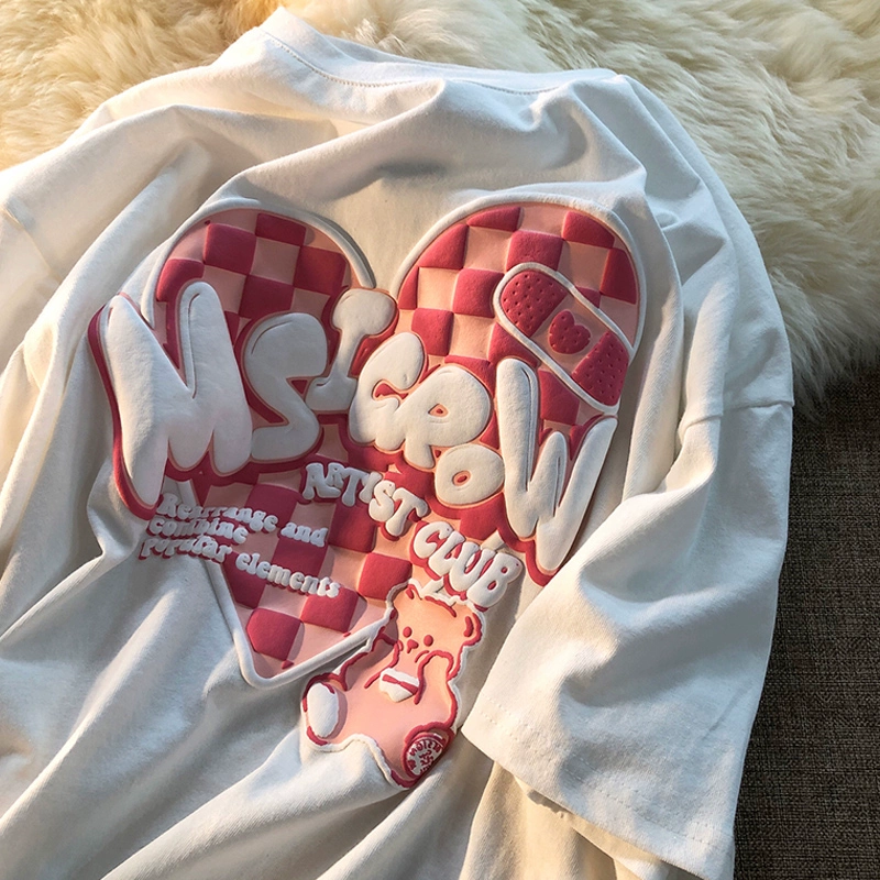 قميص كبير الحجم أنثى قصيرة -تي شيرت القطن الوردي التصميم الإحساس بخصم صديقة زوجين اللباس نصف -sleeve top top
