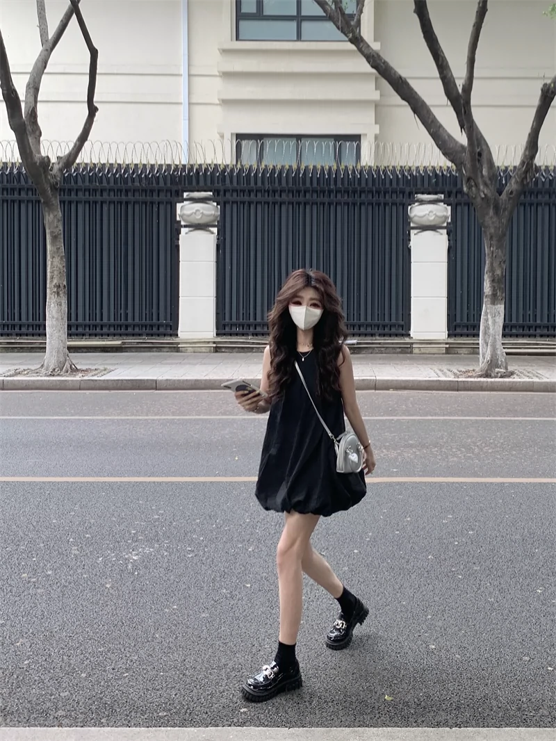 فستان أسود بدون أكمام موضة الصيف بدون أكمام