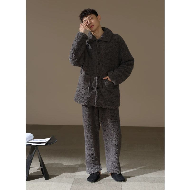 [سميكة ومخملية] زوجين منامة المرأة الخريف والشتاء الصوف المرجاني الدافئة في سن المراهقة أفخم ملابس المنزل دعوى الرجال