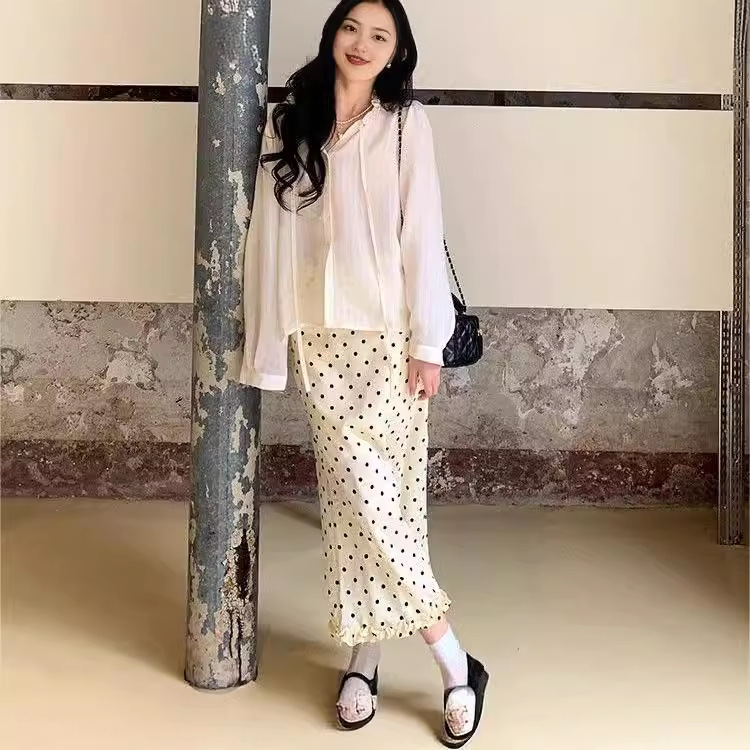 خمر موجة المشمش نقطة ذيل السمكة تنورة عالية الخصر المرأة 2024 صيف جديد وصول صغيرة الورك التخسيس منتصف طول تنورة