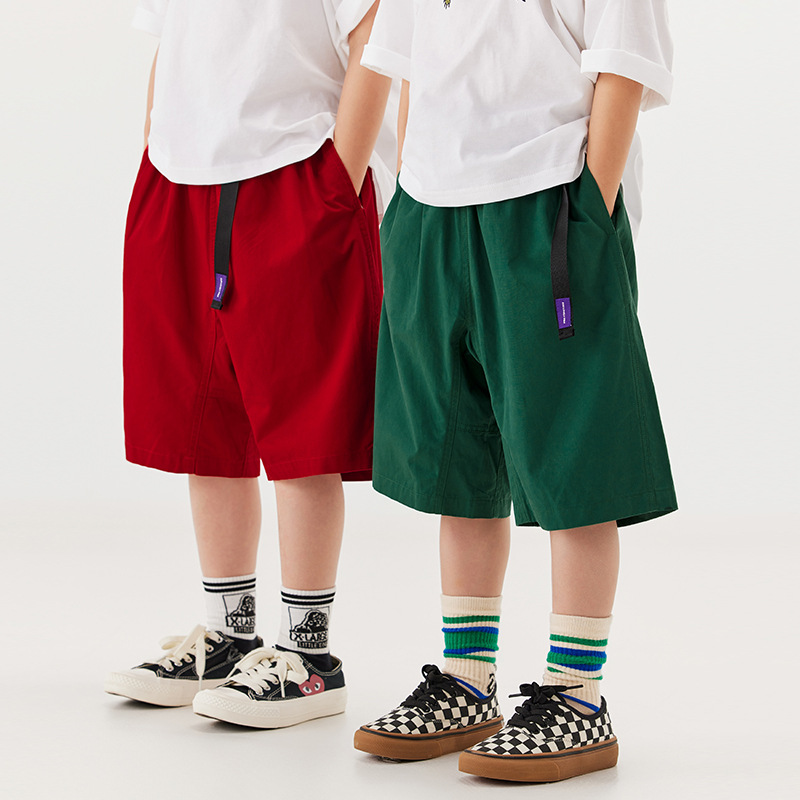 ملابس أطفال EK كاندي بلون سادة للأولاد فضفاضة بسيطة من القطن الخالص بخمس نقاط سراويل غير رسمية فضفاضة كبيرة وكبيرة للأطفال شورت عصري