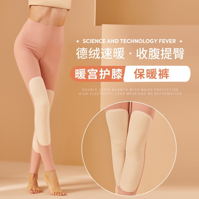 ارتفاع الخصر المخملية بناطيل تدفئة المرأة الخريف والشتاء قطعة واحدة طماق الدافئة سلس التصحيح القطن والصوف السراويل الصوف مبطنة الخريف السراويل