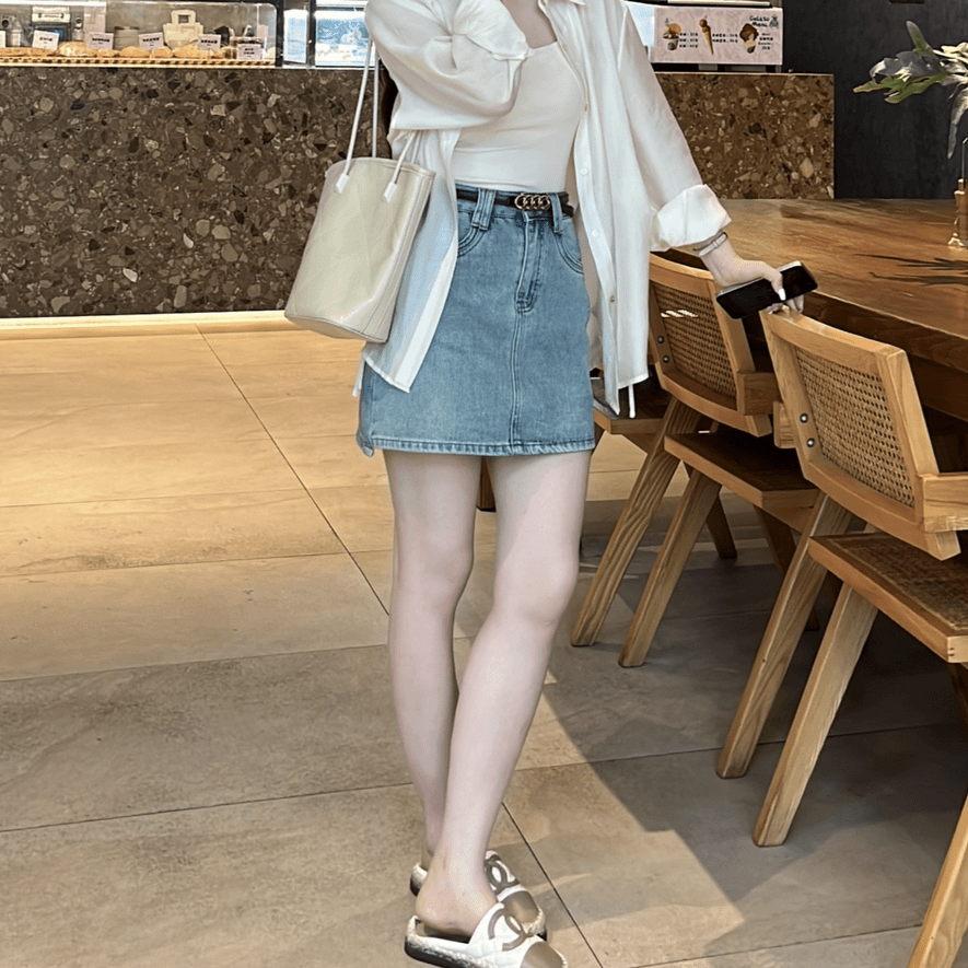 حجم كبير المرأة الكورية نمط الدنيم تنورة قصيرة المرأة الصيف رقيقة السمين فتاة عالية الخصر فضفاضة مكافحة وهج ألف خط تنورة