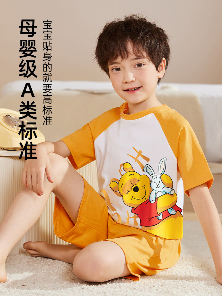 بيجامة أطفال للأولاد من القطن الخالص فئة طقم صيفي رقيق مكون من قطعتين للأولاد الكبار والأطفال 2024 ملابس جديدة مكيفة