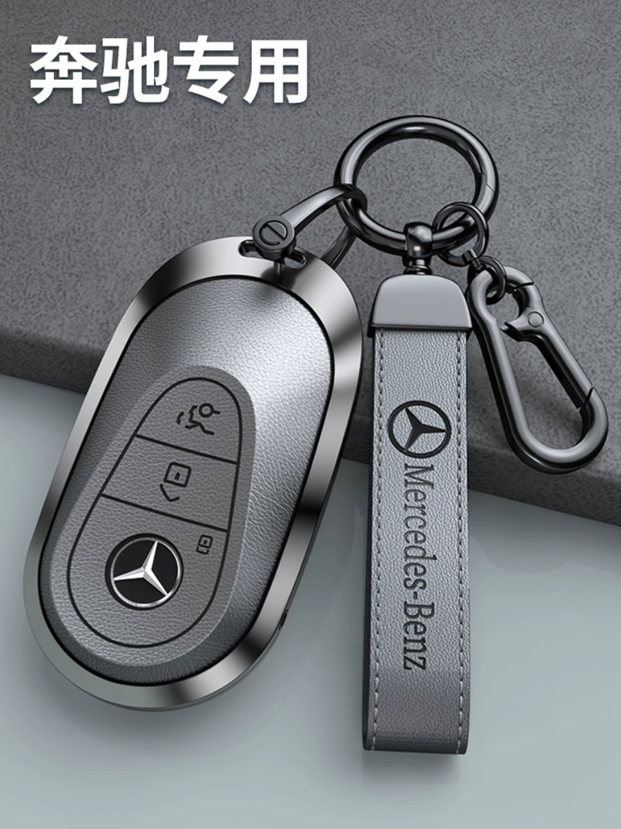 2024 جديد E-class E300L معدن شامل جلد البقر غطاء مفتاح السيارة التحكم عن بعد مشبك شل جلد طبيعي مضاد للسقوط