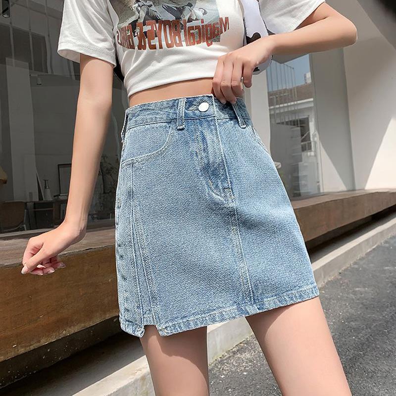تنورة صغيرة نصف تنورة عالية الخصر من الدنيم تنورة صيفية منقسمة من الدنيم تنورة فضفاضة تناسب الجميع تنورة قصيرة على شكل حرف A