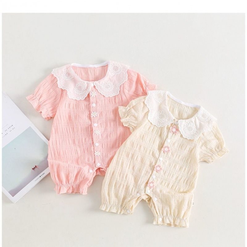 ملابس تسلق للأطفال بأكمام قصيرة ملابس صيفية للفتيات الصغيرات ملابس أحادية تسمح بمرور الهواء ورقيقة لحديثي الولادة ملابس هاربر صيفية من القطن