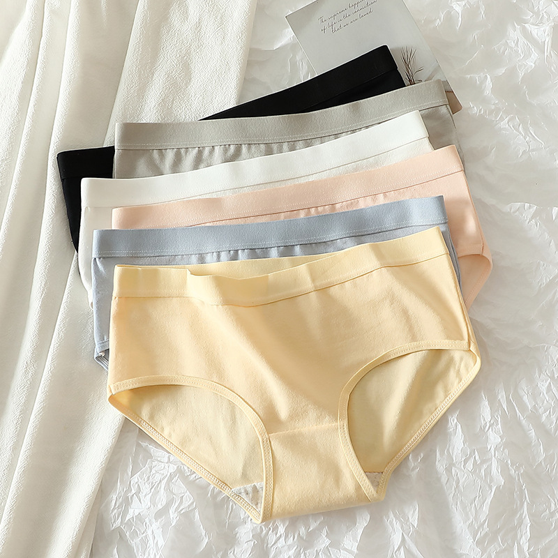 سراويل نسائية صيفية رقيقة من القطن مضادة للبكتيريا قابلة للتنفس من القطن بمنتصف الخصر للبطن متعاقدة على فتاة يابانية بلون واحد سراويل نسائية