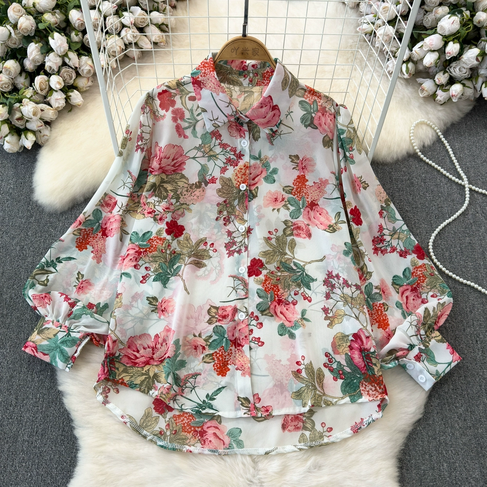 قميص شيفون كاجوال فضفاض بأكمام طويلة وصدر واحد