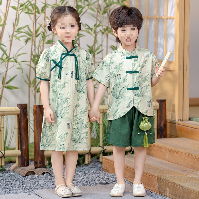 الصيف اليومية تانغ دعوى رياض الأطفال حديقة البدلة 1 يونيو دعوى التخرج بدلة الأداء بأكمام قصيرة اللؤلؤ الأخضر الخيزران دعوى Hanfu