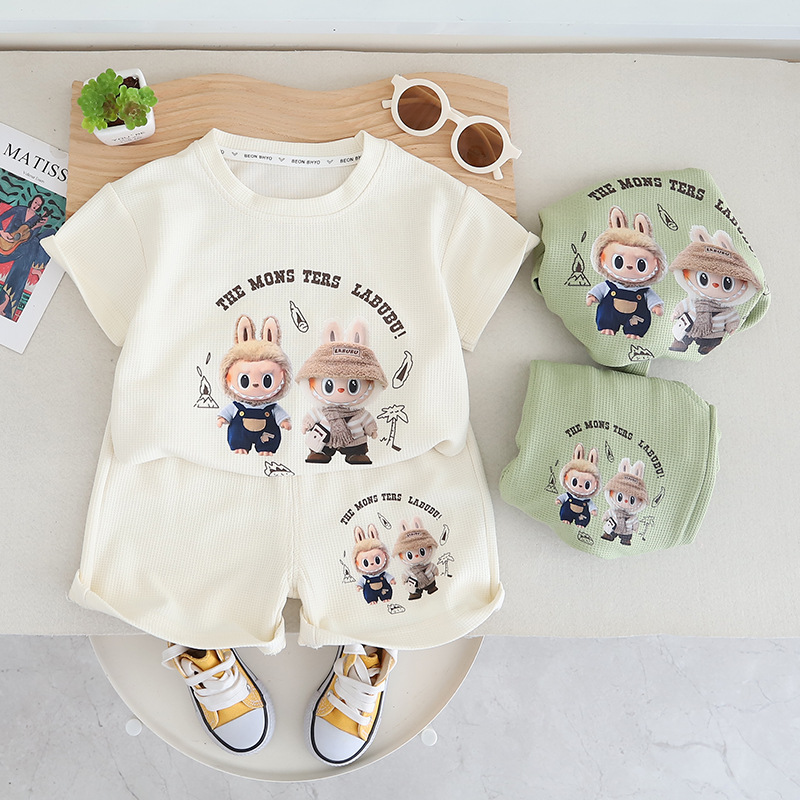 ملابس أطفال للأولاد بأكمام قصيرة تي شيرت على الطراز الكوري 2024 جديد للصيف للفتيات يسمح بالتهوية بنصف كم صيفي برسوم كارتونية