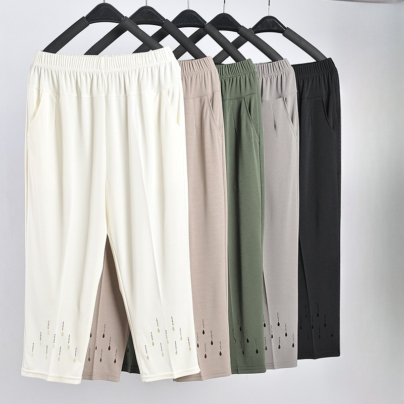 سراويل أمي صيفية رفيعة في منتصف العمر وكبار السن سراويل نسائية أنبوب مستقيم فضفاض مقاس كبير سراويل مقصوصة من الحرير الجليدي للجدة
