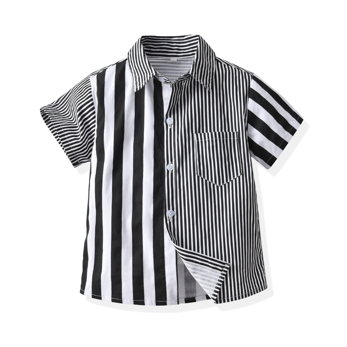 2022 الأولاد مخطط التلبيب قميص بأكمام قصيرة للأطفال طفل الصيف سترة فستان غير رسمي بأكمام قصيرة