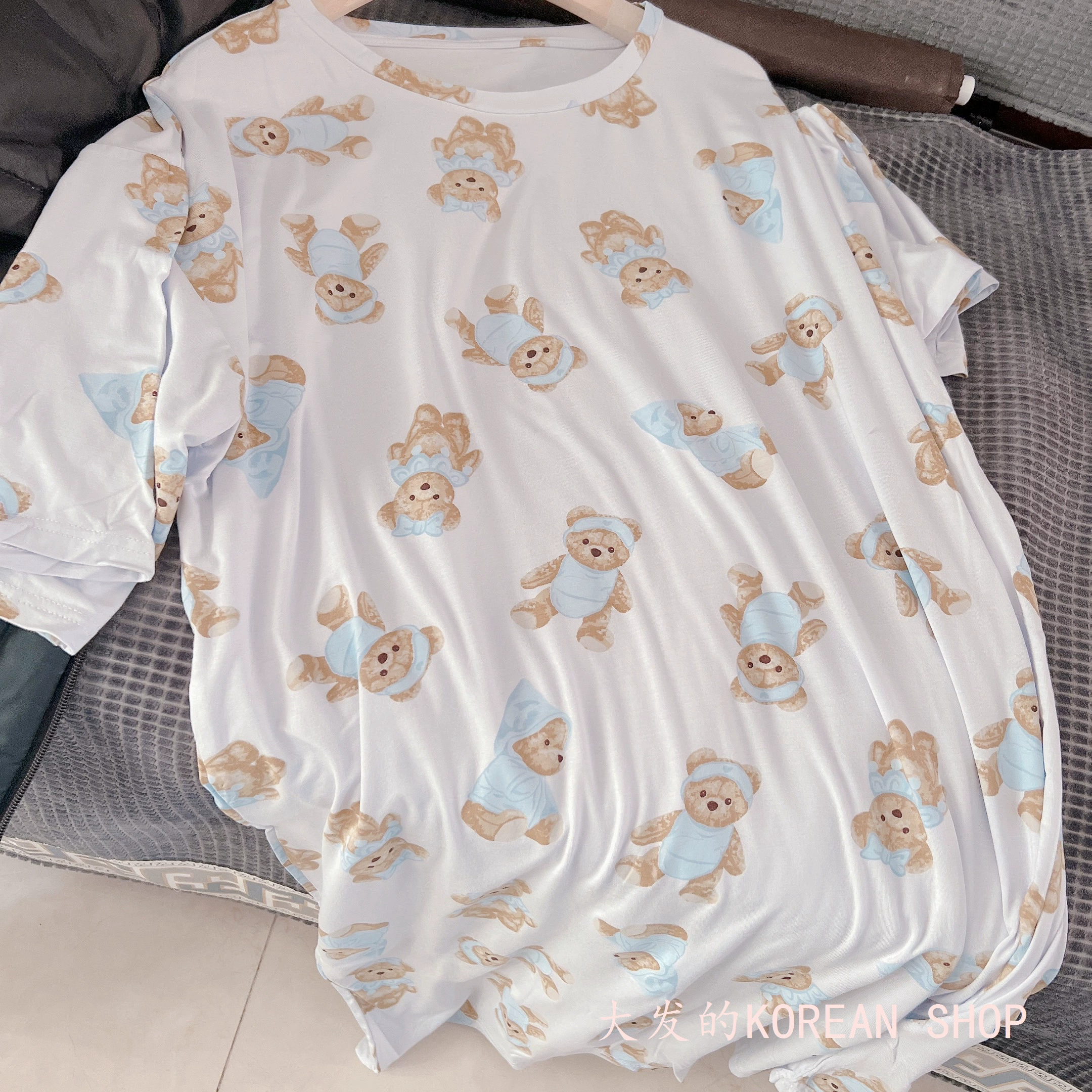 القطن الصيفي الياباني اللطيف الدب القصيرة القصيرة ، كرتون ، أبيض ناعم جولة الرقبة المنزل خدمة بيجاماس فتاة