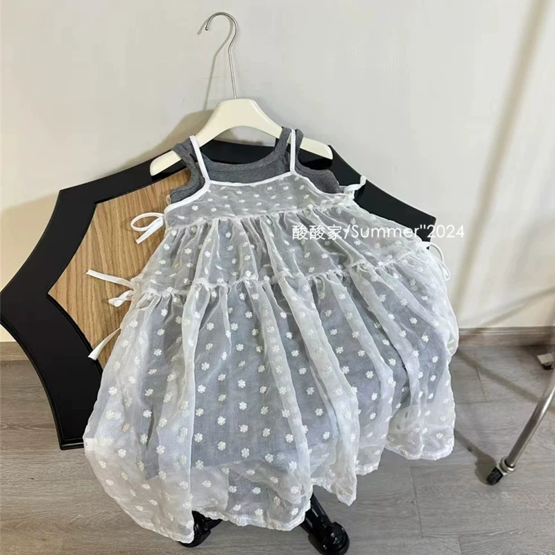 فستان صيفي من الدانتيل مكدس باللون الرمادي مع حمالات غير رسمية