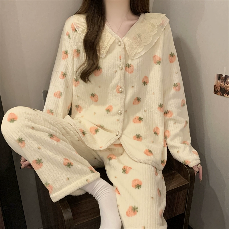 طباعة سميكة للنساء في المخملية الفرنسية بيجامات الشتاء الحلو