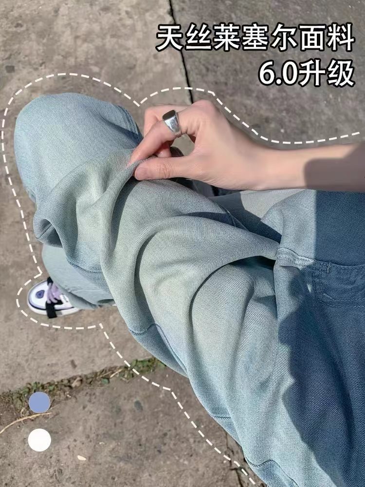 جينز مستقيم من الحرير الجليدي بلون فاتح للنساء صيفي رقيق مقاس كبير بخصر عالٍ يغطي الورك على شكل كمثرى بنطال ايوسل واسع الساق