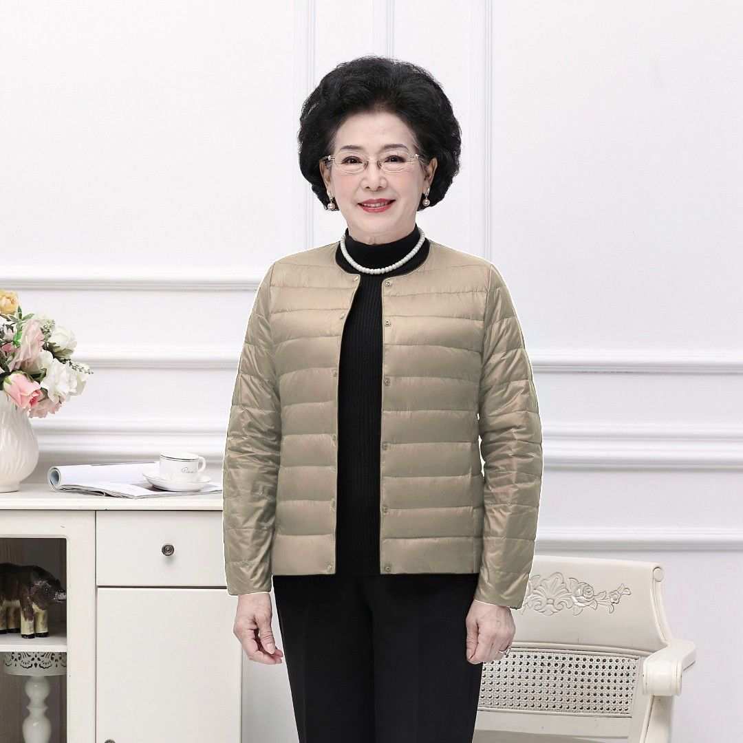 2023 سترة نسائية خفيفة الوزن وخفيفة الوزن مقاس كبير لعام 2023 بدلة أم قصيرة بدلة أم متوسطة العمر وكبار السن سترة رقبة مستديرة رفيعة للجدة
