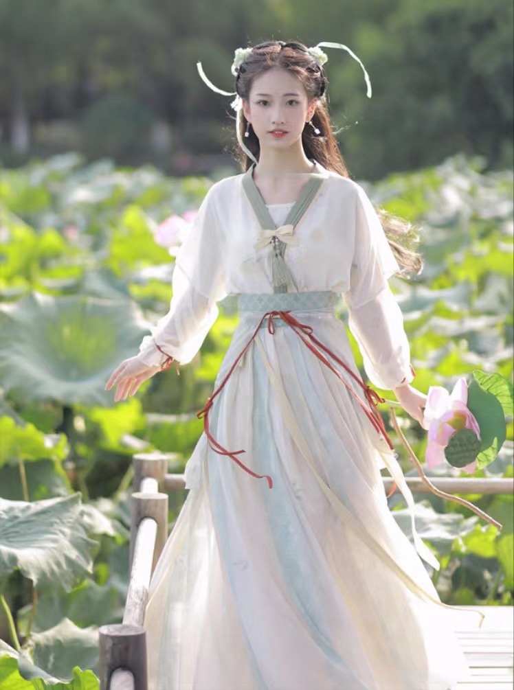 تشاو لينجر هانفو جديد الربيع والصيف المرأة تانغ نمط تانغ الراكون قطعة واحدة تنورة الخصر نصف الذراع الياقة المستديرة قميص الربيع والصيف