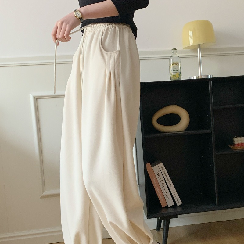حجم كبير السراويل فضفاضة واسعة الساق للنساء الربيع والخريف 2024 جديد ثنى صغير بلون سراويل تقليدية السراويل السوداء