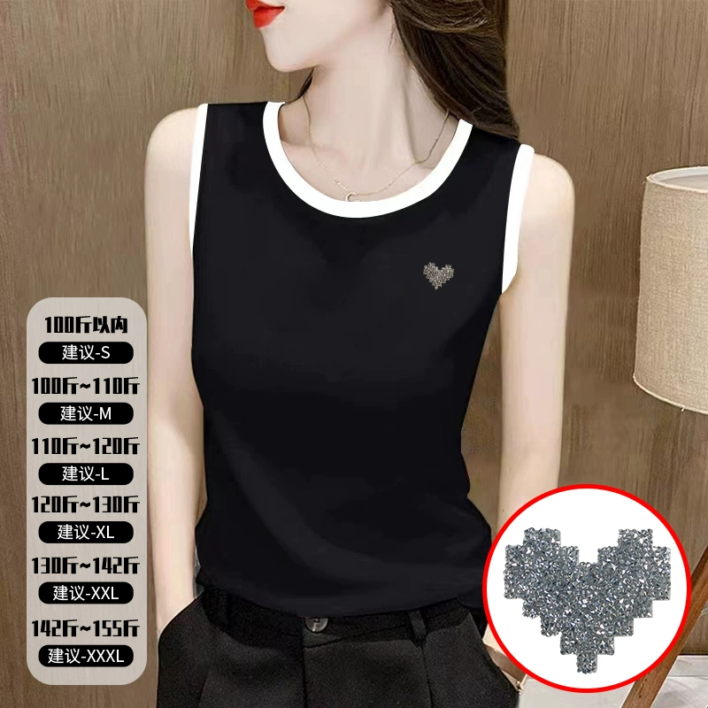سترة أوروبية باللونين الأبيض والأسود متباينة على طراز هونج كونج بدون أكمام سترة ماسية ساخنة 2024 نمط جديد لصيف 2024 ملابس علوية حلوة وحارة وحمالات متخصصة