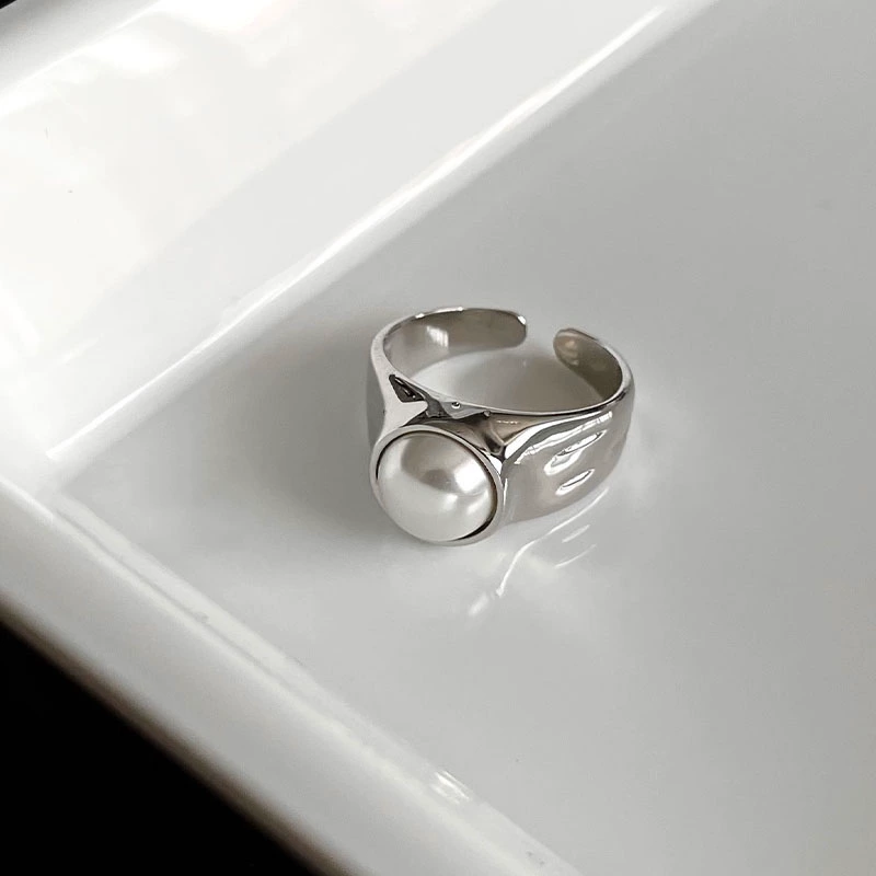 خاتم جديد من الفضة الإسترليني 2024 مرصع باللؤلؤ مفتوح على مصراعيه خاتم فرنسي بسيط متعدد الاستخدامات للنساء قابل للتعديل