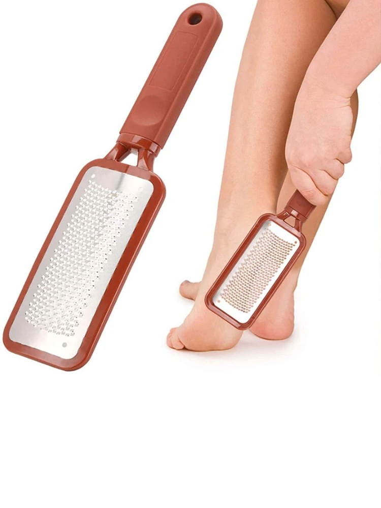 مبرد القدم المصنوع من الفولاذ المقاوم للصدأ لإزالة الكالس باستخدام مشبك مزدوج. جهاز تنظيف احترافي للأقدام الرطبة والجافة.