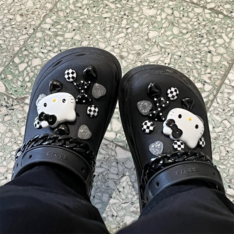 الظلام مرحبا كيتي هول الأحذية الاكسسوارات الساخنة حذاء زهرة انفصال حذاء مشبك DIY لطيف العلوي الزخرفية مشبك الصليب