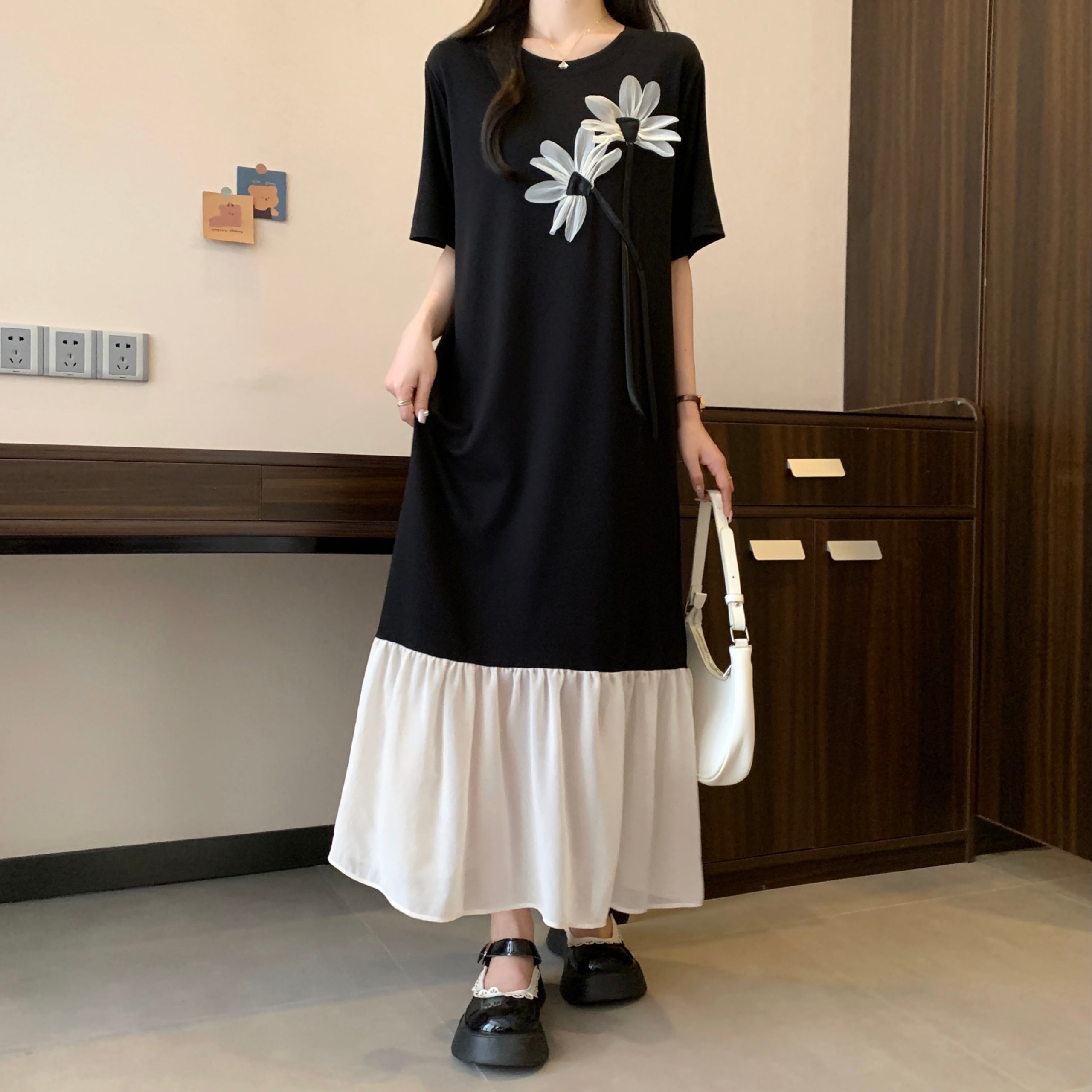 فات مم فضفاضة تقسم فوق الركبة فستان غير رسمي بأكمام قصيرة