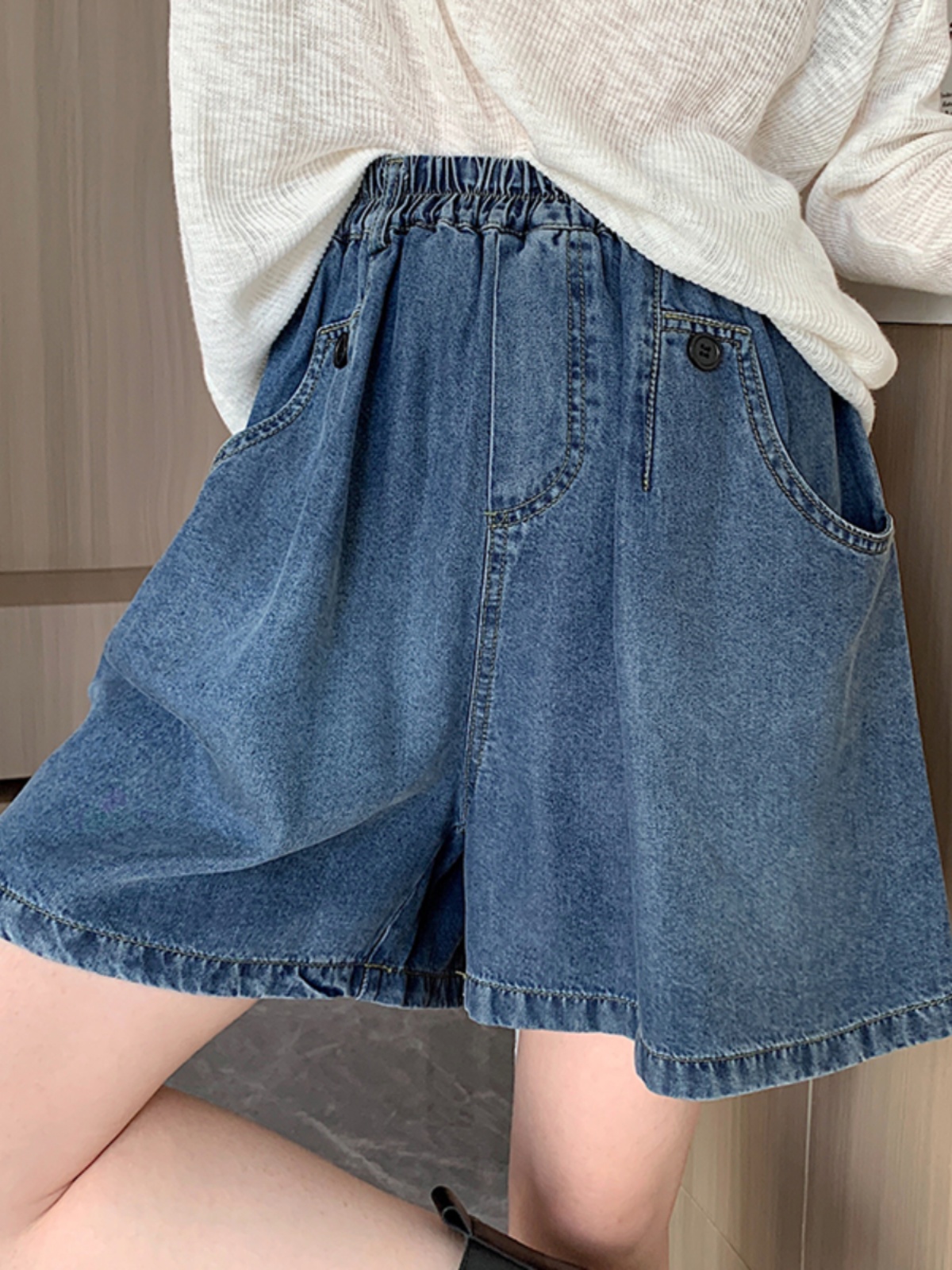 شورت من قماش الدنيم ذو الخصر المطاطي الرفيع للغاية بمقاس كبير من Tencel مقاس Fat mm