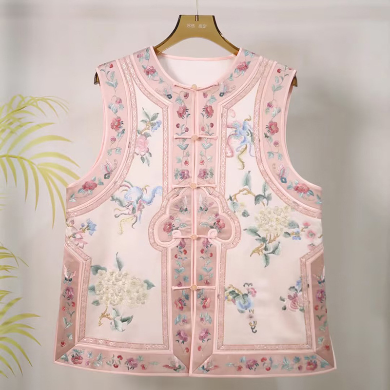 100 حمض الخليك الجديد الصيني الخفيف Guofeng الصناعة الثقيلة المطرزة المرأة 2024 سترة جديدة عالية الإحساس M6019