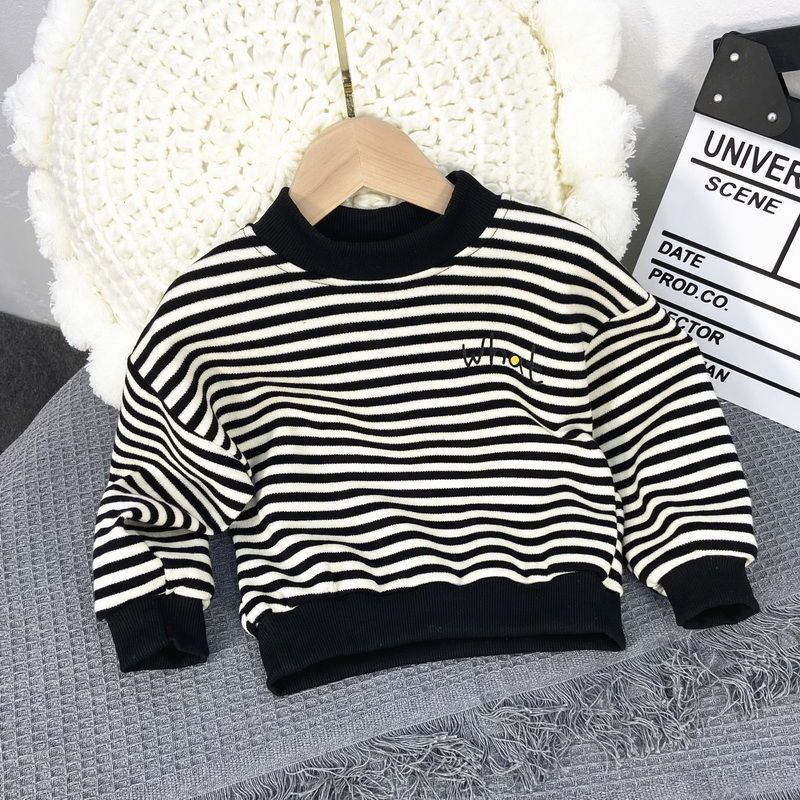 ملابس أطفال للأولاد مخططة للعرق فضفاضة للأطفال على الطراز الكوري لفصلي الربيع والخريف ملابس أطفال علوية عصرية