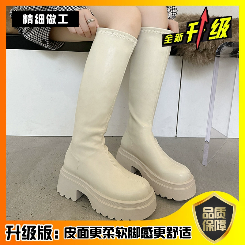 حذاء طويل أبيض لخريف 2023 بنعل سميك ونحيف