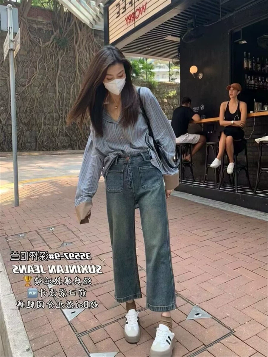 بنطلون جينز قصير ومتعدد الاستخدامات ومغسول بشكل مستقيم