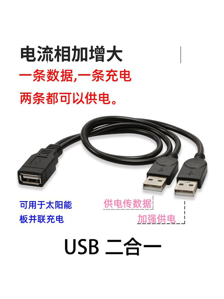 كابل USB متوازي للطاقة الشمسية من النحاس النقي 1 نقطة 2، أنثى واحدة واثنان ذكر USB لشحن بيانات توصيل البيانات
