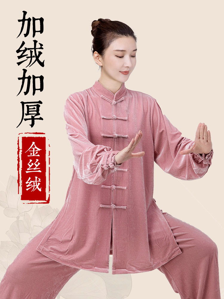 Xiaohe Mountain Taiji ملابس نسائية جديدة 2023 الخريف والشتاء سميكة الدافئة الذهبي المخملية Taijiquan ممارسة الملابس ملابس للرجال