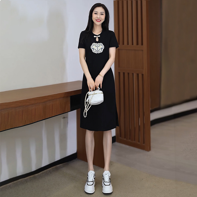 القطن قصير الأكمام تي شيرت المرأة حجم كبير في منتصف العمر وكبار السن الأم أعلى الرقبة المستديرة النمط الصيني الجديد ملابس نسائية غير رسمية لفصل الصيف