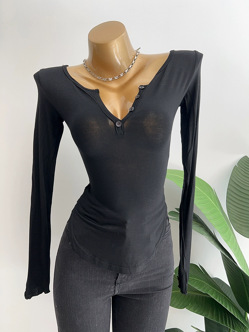تي شيرت برقبة على شكل حرف U بلون سادة بسيط كاجوال بأكمام قصيرة