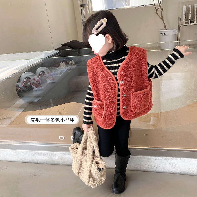 سترة الفتيات لفصل الخريف والشتاء ملابس خارجية صدرية خروف سميكة سترة شتوية عصرية للأطفال ملابس خريفية للأطفال