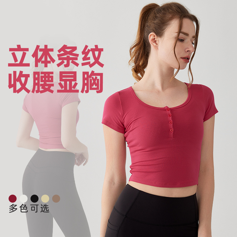 ملابس يوغا قصيرة الأكمام للسيدات بياقة الأميرة الجديدة للربيع والصيف، ملابس خارجية تناسب الجميع، ملابس رياضية، ملابس تدريب البيلاتيس