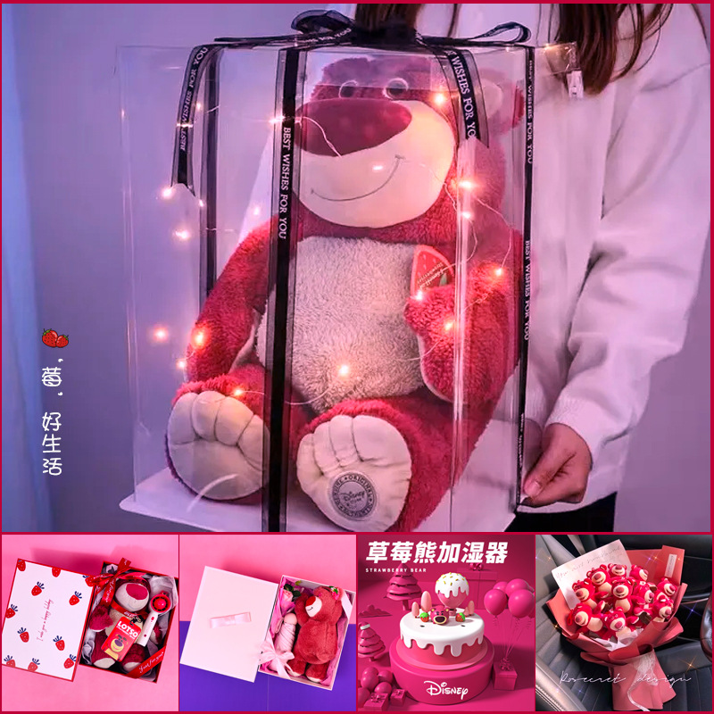 الفراولة الدب سلسلة هدية عيد ميلاد الفتيات دمية عيد الأطفال الفراولة الدب وجبة خفيفة هدية صندوق حقيبة المعانقة دلو باقة زهور
