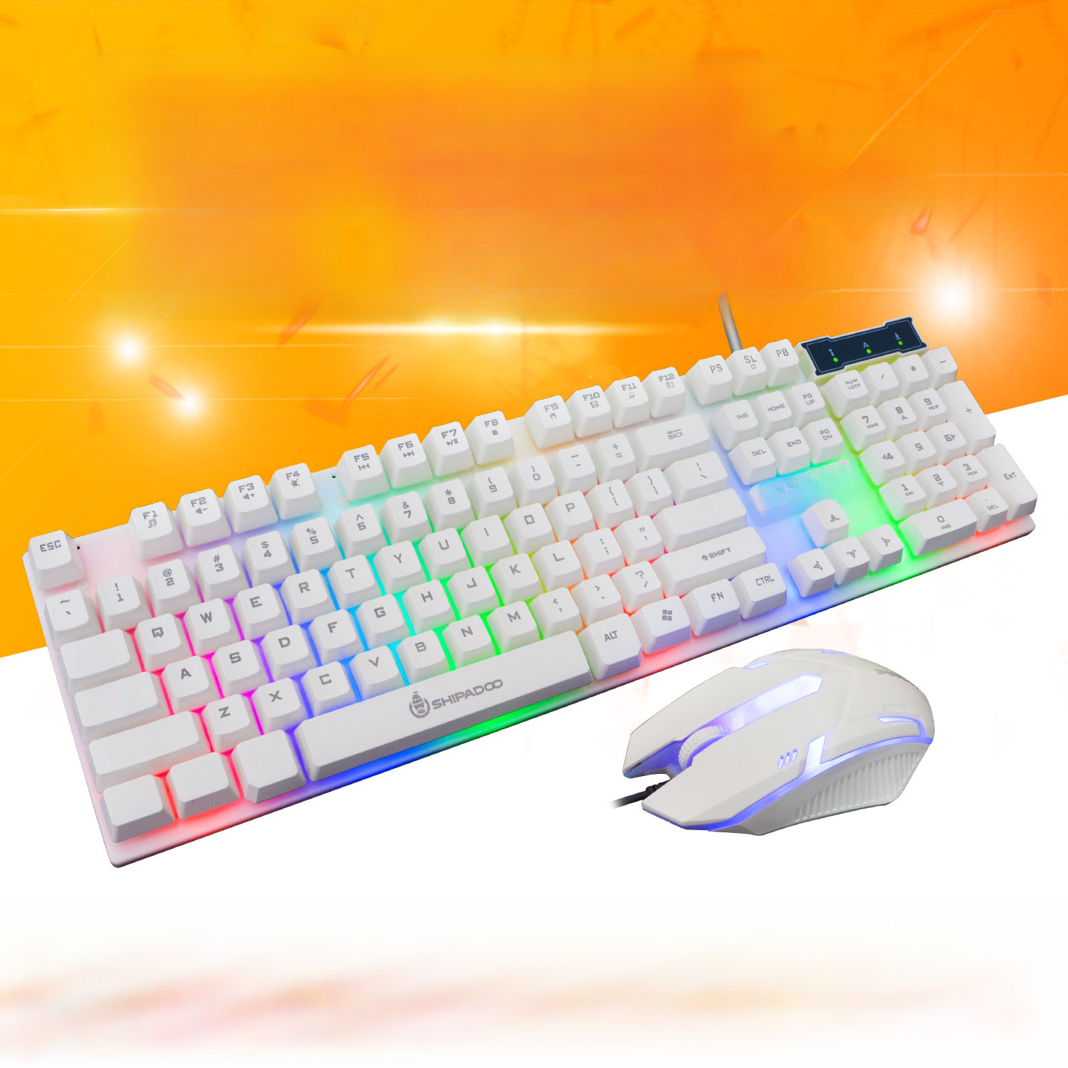 مجموعة ماوس لوحة مفاتيح الكمبيوتر السلكية لعبة اليد الميكانيكية قوس قزح تعليق الخلفية مجموعة ماوس لوحة المفاتيح المضيئة