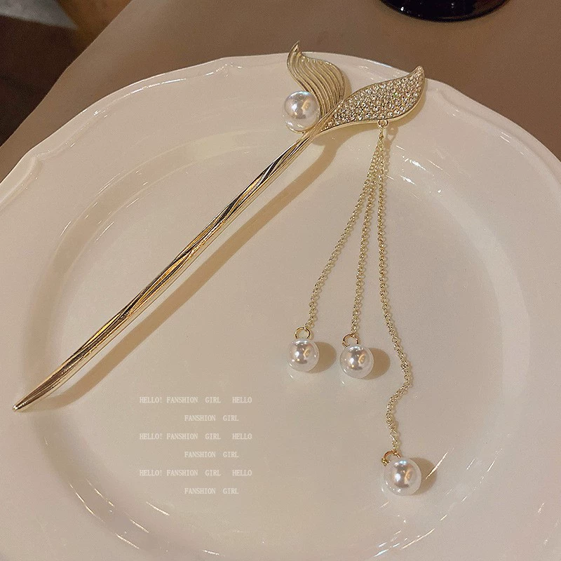 دبوس شعر على الطراز الوطني على شكل ذيل حورية البحر على الطراز القديم للنساء دبوس شعر بسيط على شكل شرابة لؤلؤية على الجزء الخلفي من إكسسوارات دبوس شعر الرأس