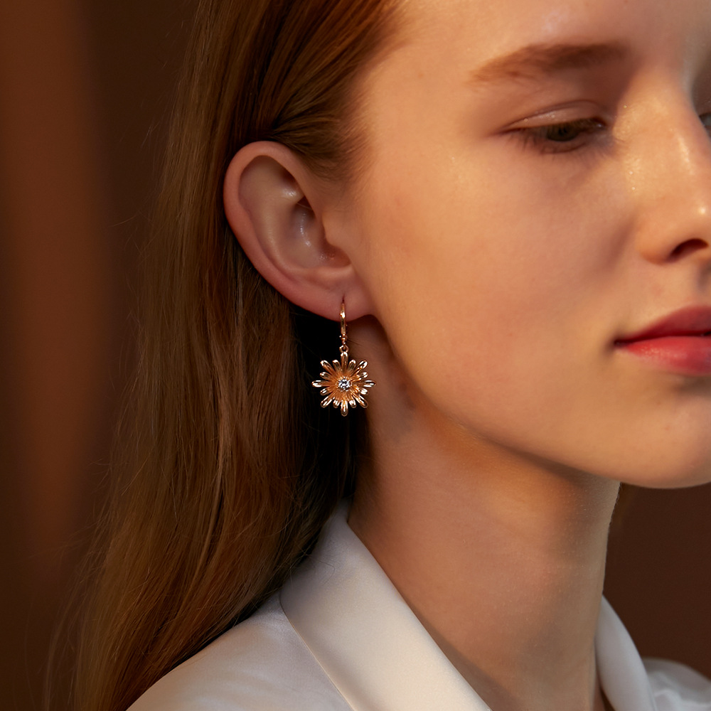 عبر الحدود الجديدة عباد الشمس الأذن مشبك المرأة أقراط الماس بسيطة أنيقة أقراط سبيكة زهرة موري